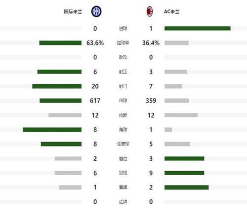 第28分钟国际米兰差点打破场上平衡,阿切尔比接到队友开出的左侧角球后,前点甩头攻门,可惜运气不佳,皮球击中立柱被弹出,7分钟之后,劳塔罗禁区内不停手抽射,被迈尼昂扑了一下后,又一次打在立柱上,靠着门框的帮忙,AC米兰带着0-0的比分,回到了中场更衣室。