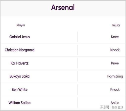 不利的是,阿森纳在赛季初期就遇上伤病问题,根据英超官网的数据,有6人受伤,包括热苏斯、新援诺尔高、哈弗茨、萨卡、怀特和萨利巴。热苏斯已经长期缺席,萨利巴是最新的,面对利物浦之后受伤。相信医疗团队已经开始承受巨大的压力,尽管引入了多名新援,也不能如此“嚯嚯”啊。
