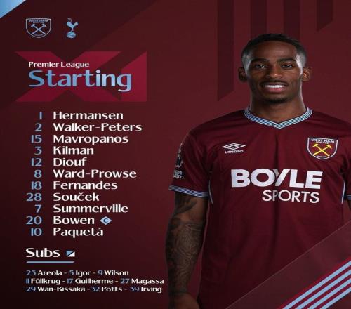 北京时间9月14日00:30,英超 第4轮,西汉姆联坐镇主场迎战托特纳姆热刺,赛前双方球队首发名单公布如下: