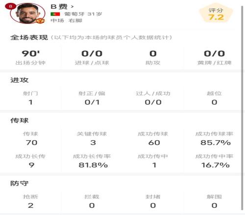 雷速体育9月15日宣 英超第4轮,曼联以0-3的比分不敌曼城。布鲁诺·费尔南德斯打满全场。