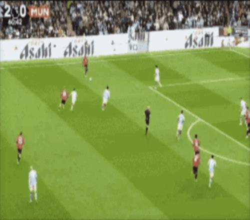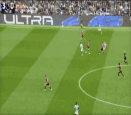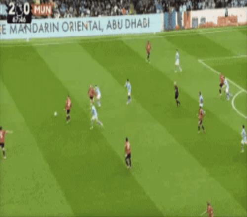 第68分钟,B席中场断球后直塞,哈兰德单刀突入禁区,右脚推射梅开二度,3-0!
