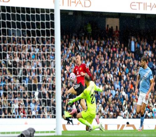 第16分钟,罗德里丢球,曼联发动快速反击,多古将球传到后点,阿玛德半个鲁尼附体,腾空而起,将球踢呲。