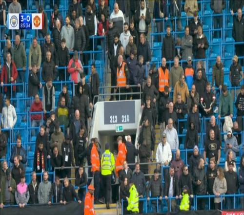 面对曼城,曼联防线球员不断失误,足足被曼城打入了3球。比赛的第85分钟,曼联球迷已经纷纷开始退场。