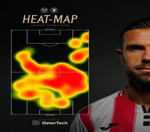 布伦特福德官方社媒晒出亨德森的跑动热点图,这位老将覆盖范围极大,布伦特福德配文:“亨德森无处不在。”