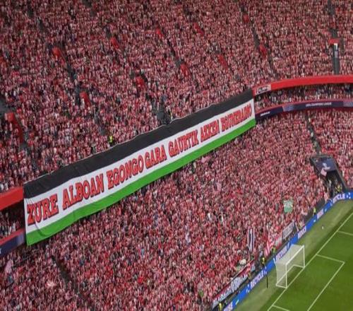 在毕尔巴鄂竞技与阿森纳的欧冠比赛中,圣马梅斯球场不仅见证了一场高水平对决,也出现了毕包球迷声援巴勒斯坦的场景。
