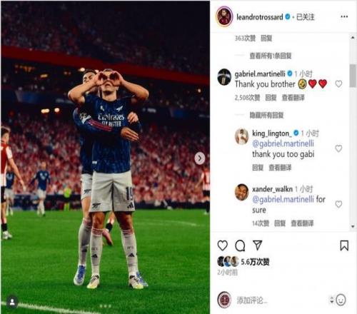 此役特罗萨德和马丁内利互相送出助攻,赛后特罗萨德在社交媒体上庆祝胜利:“欧冠之夜回来了!”