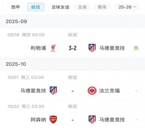 根据欧足联的规定,西蒙尼被直红罚下后,将在欧足联赛事中自动停赛一场。也就是说,欧冠第二轮马竞对阵法兰克福的比赛西蒙尼将作壁上观。