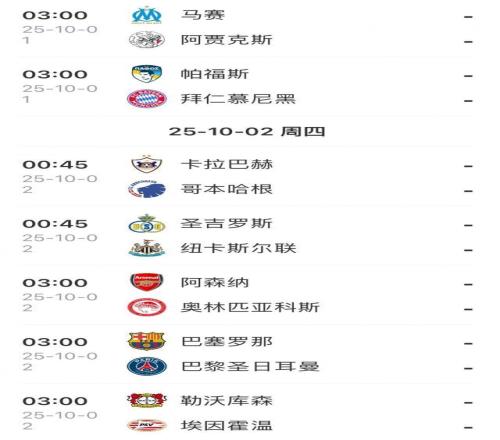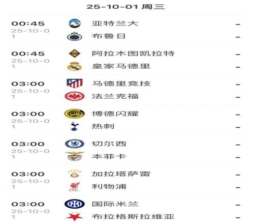 直播吧9月19日宣 欧冠第一轮比赛全部结束,36支球队在3天内打完了18场比赛。第二轮比赛将在北京时间10月1日-2日凌晨进行,将在2天内打完18场比赛。