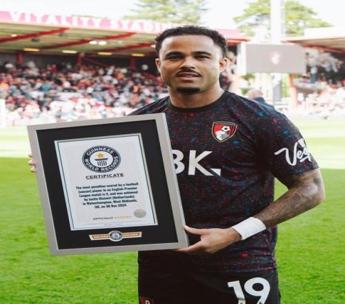 直播吧9月19日宣 伯恩茅斯俱乐部官方消息,球队边锋贾斯汀-克鲁伊维特获得吉尼斯世界纪录认证,成为英超单场主罚点球最多的球员。