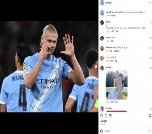 本场比赛哈兰德破门,打进个人欧冠第50球,他也在个人社媒晒出以“50”手势庆祝进球照片,配文写道:“美妙的欧冠之夜!”