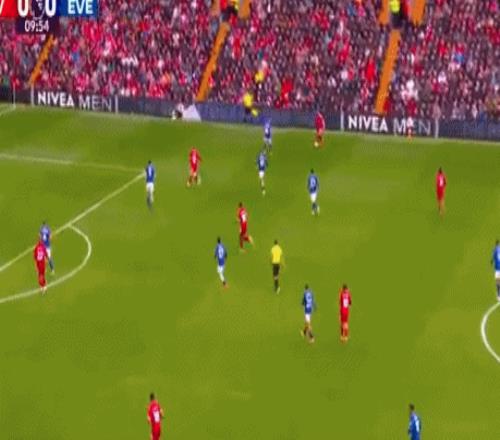 比赛开打后,莫耶斯果断在后场摆下重阵,做好了防守反击的准备;不过他们的城门还是早早便宣告沦陷;第11分钟,加克波中线积极断抢,麦卡利斯特将球转移到了右路,萨拉赫稍作观察后挑传禁区,后排插上的赫拉芬贝赫跳射远角刚好越过皮克福德头顶掉入网窝,1:0!