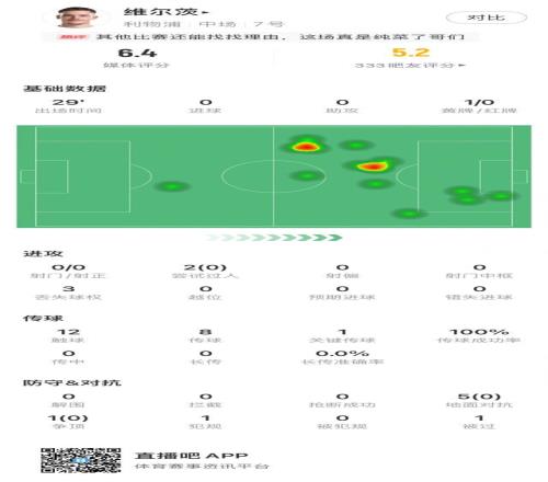 直播吧09月20日宣 英超第5轮,利物浦2-1埃弗顿,维尔茨下半场第61分钟替补出场,吃到一张黄牌。