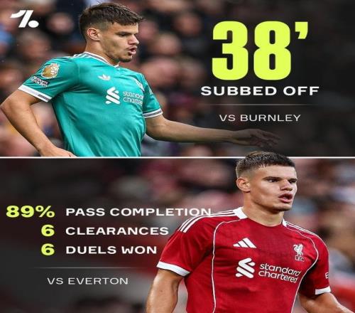 利物浦新援科尔克兹在上一轮英超对阵伯恩利的比赛中第38分钟就被提前换下,对阵马竞也只在最后时刻替补登场,不过本场比赛他可谓证明了自己的实力,贡献6次解围、6次成功对抗,传球成功率高达89%。