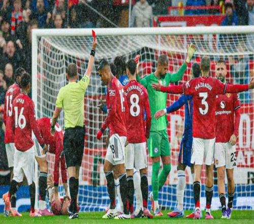 但多一人作战的曼联,还是在第14分钟打破场上平衡,多古接到队友右路下底传中后,直接头球摆渡门前,B费抢点破门打进了自己代表红魔的第100粒进球,曼联也早早取得了1-0的领先,第21分钟马雷斯卡再次做出换人调整,用桑托斯替换下了帕尔默,21分钟内换三人也创造了英超的纪录。