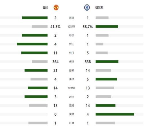 算上伤停补时近20分钟,切尔西发起了疯狂的反扑,也创造出了几次极具威胁的进攻机会,好在众志成城的红魔顶住了蓝军的压力,艰难将1球的优势,保持到了最后。