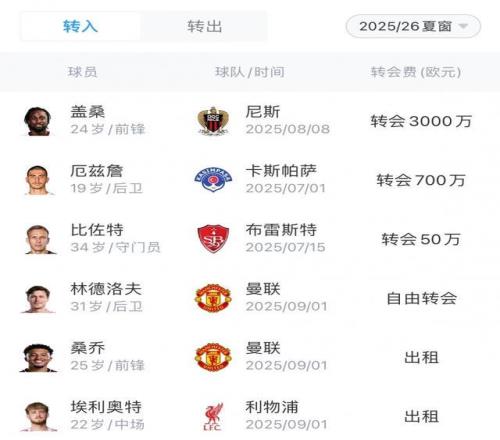 维拉今夏引入桑乔、埃利奥特、林德洛夫等人↓