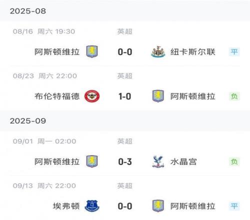 直播吧09月21日宣 今晚21:00,英超第5轮,维拉将客场挑战升班马桑德兰。英超开赛以来,维拉2平2负1球未进,仅积2分位列英超倒数第二。