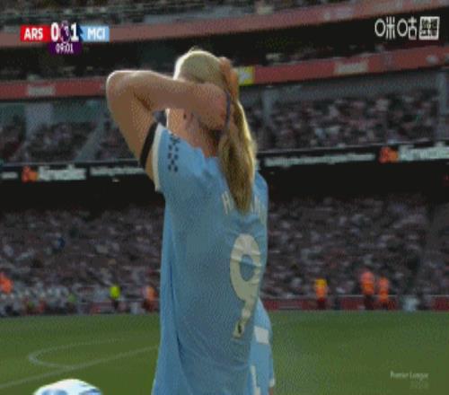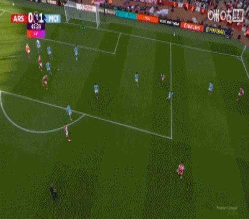 第9分钟,曼城后场得球快速策动进攻,哈兰德分球,赖因德斯持球一路推进,随后又斜传给快速前插的哈兰德,后者禁区内几乎单刀球机会,一脚低射洞穿拉亚十指关,曼城1-0阿森纳。↓