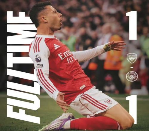开场第9分钟,曼城就打入1球,而且还是通过人们所不熟悉的反击战取得进球,赖因德斯带球推进助攻哈兰德单刀推射建功。随后的比赛阿森纳持续发动进攻威胁,曼城承受的防守压力着实不小。终于在第93分钟,阿森纳打入扳平比分的1球,2名替补出场的球员连线,埃泽助攻马丁内利挑射得分,双方1-1战平。本场阿森纳控球率67%-33%领先曼城,射门12-5,这场比赛“很不瓜迪奥拉”,曼城踢得更加务实了,遗憾被绝平。