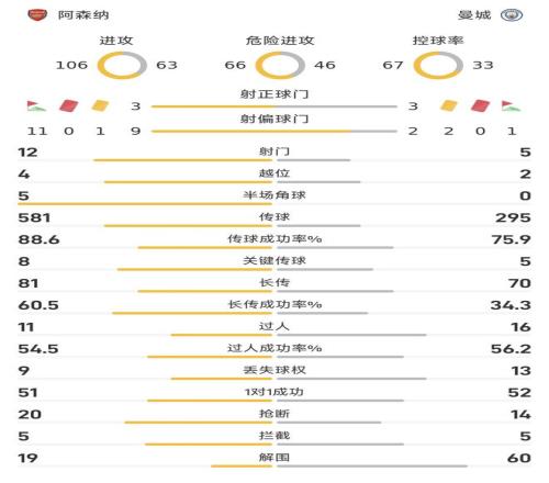 雷速体育9月22日宣 英超第5轮,曼城客场1比1战平阿森纳,曼城本场控球率仅32.8%。