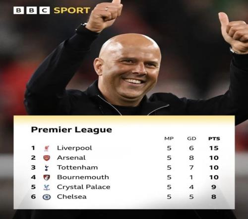 据英超官方统计,本赛季5轮联赛过后,利物浦5分领跑积分榜,这种情况在历史上只出现过3次,而利物浦独占2次。
