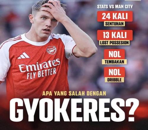 对阵曼城的比赛,首发出战的约克雷斯,全场几乎没有什么机会,赛后据统计,这名中锋全场触球只有23次,0射门,0过人,13次丢失球权...