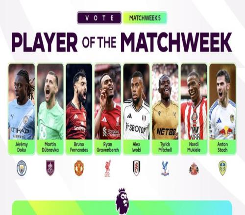 雷速体育9月22日宣 英超官方公布了第五轮最佳球员的候选。其中,多库、B费、赫拉芬贝赫在列。