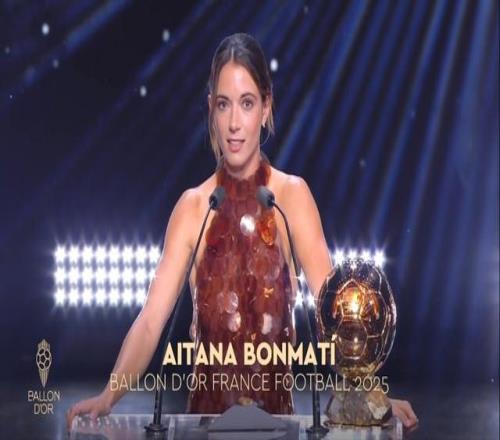 直播吧09月23日宣 2025年金球奖颁奖典礼,邦马蒂获得女子金球奖,连续三年获奖。