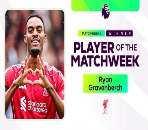 英超官方宣布,利物浦中场赫拉芬贝赫当选英超第5轮最佳球员。