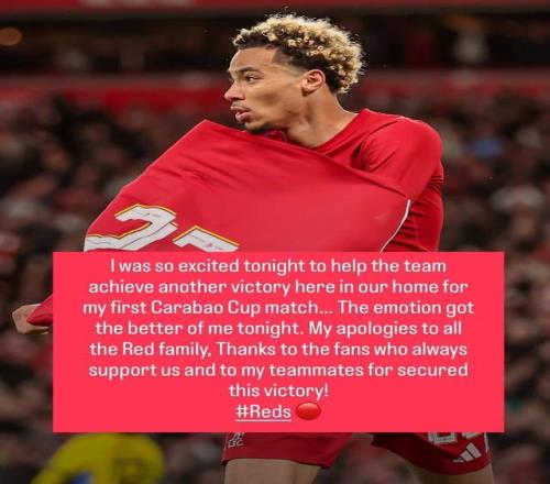 意识到自己错误的埃基蒂克,也在赛后第一时间通过社媒向利物浦球迷道歉:“今晚能首次参加联赛杯主场赛事并帮助球队再夺胜利,我无比激动……但今夜情绪确实有些失控。在此向所有红军大家庭致歉,也感谢一直支持我们的球迷,以及携手赢下比赛的队友们!”