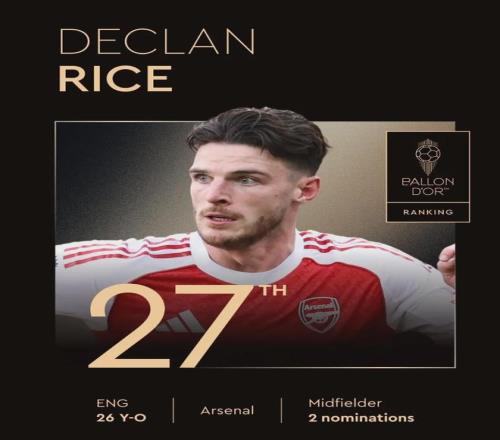 其中,女足金球奖评选中,阿森纳有4人跻身前10,另有3人跻身前30;在男足金球奖评选中,赖斯和哲凯赖什均跻身前30,其中哲凯赖什第15位,赖斯第27位。