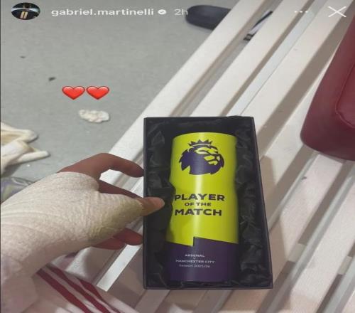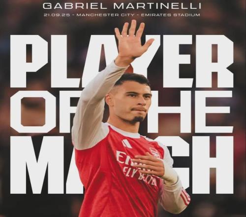 马丁内利被阿森纳官方票选为了对曼城一役的全场比赛最佳球员!