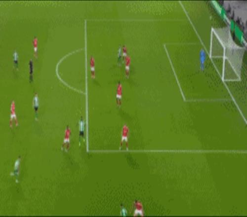 比赛第15分钟,安东尼在右路拿球后,先是利用一个轻巧的假动作晃过防守球员,随后强行内切到大禁区边缘。面对多人上前围堵,冷静地用脚外侧将球斜塞进禁区,皮球穿透对方五人防线,精准送到巴坎布脚下。后者轻松抽射破门,帮助贝蒂斯早早取得领先。
