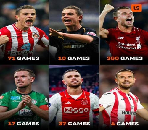 直播吧9月25日宣 据LiveScore的数据统计,乔丹-亨德森职业生涯中俱乐部出战场次已经达到500场里程碑。