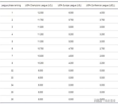 不过,由于现在没有确定最终的排名,只能按第36名来计算,欧冠是6分,欧联杯和欧协联都是0分。所以,现在所有球队的奖励积分,全部都是欧冠带来的,每支球队各有6分。