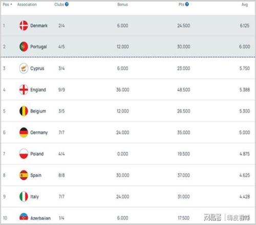 有趣的是,根据欧足联官网最新的积分榜,西甲和意甲的单赛季积分暂时只有4分多,比德甲(5.000分)要低一些,这是合理的。但是保持不败的德甲,比输了两场的英超(5.388分)还要低,似乎有点难以理解。
