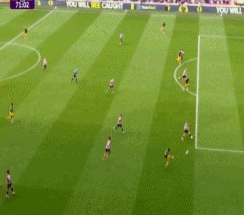 第71分钟,库尼亚右路横传,科林斯拉倒姆贝莫,主裁判判罚点球,费尔南德斯主罚点球被凯莱赫封出。