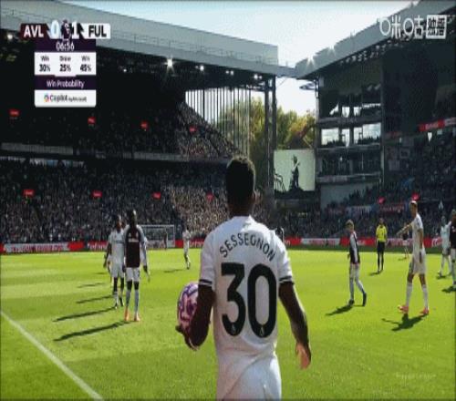 伤停补时6分钟。全场比赛结束,阿斯顿维拉3-1富勒姆。