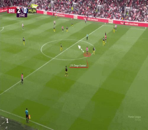 有的时候,甚至多古也回到防线上,成为五后卫站位。但布伦特福德踢得很聪明,他们调动了曼联,破开了防守。他们的第二个进球,就是通过跑位扰乱了曼联人员充足的防线。