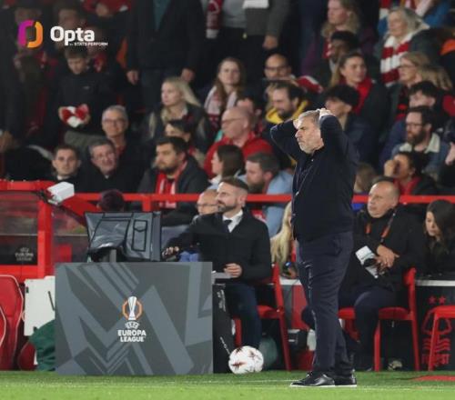 Opta统计,波斯特科格鲁是诺丁汉森林近100年历史上第一位上任以来前6场比赛没有胜绩(2平4负)的正式主帅。