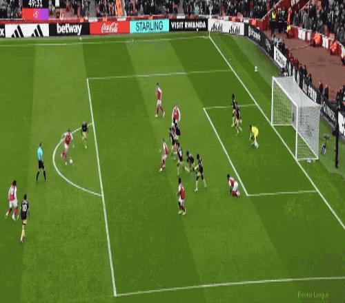 第38分钟,萨卡策动进攻,苏维门迪的直塞恰到好处,埃泽的怒射被扑出,赖斯补射,枪手取得领先。