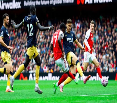 第23分钟,阿森纳率先进球,接到赖斯的妙传,萨卡突入禁区冷静破门,但还没来得及庆祝,边裁就已经举旗,萨卡越位在先,进球无效。