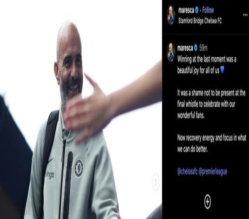 雷速体育10月6日宣 英超第7轮,切尔西在主场凭借埃斯特旺的绝杀以2-1的比分战胜利物浦。赛后,本场比赛吃到一张红牌的马雷斯卡在社媒上发表了自己的感受。