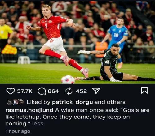 霍伊伦Instagram:一位智者曾说“进球就像番茄酱,一旦开启,就会源源不断地来”。
