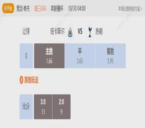 竞足 周三026英联赛杯纽卡斯尔VS热刺