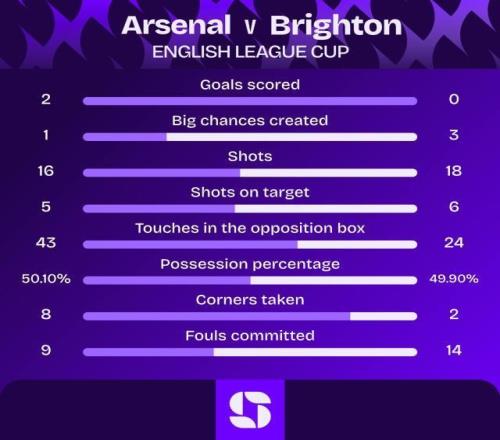 英格兰联赛杯第4轮,阿森纳主场迎战布莱顿。作出轮换的枪手凭借恩瓦内里和萨卡的进球2比0轻取布莱顿,挺进联赛杯8强,下一轮将继续坐镇主场迎战淘汰利物浦的水晶宫。