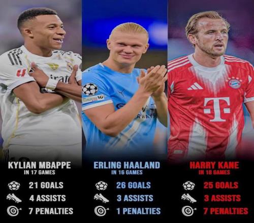 11月2日,曼城2比0击败排名第2位的黑马伯恩茅斯,上轮客战阿斯顿维拉哑火的哈兰德梅开二度,让蓝月军团连升3位,重返英超次席。英超10轮战罢,哈兰德已攻入13球,是射手榜并列第2位的4名前锋进球数(6球)的2倍有余。连同欧冠,赛季开局13场哈兰德17球1助攻,场均入球1.31个,参与进球1.38个。