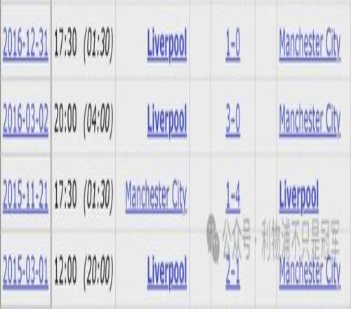 以下为利物浦vs曼城数据前瞻: