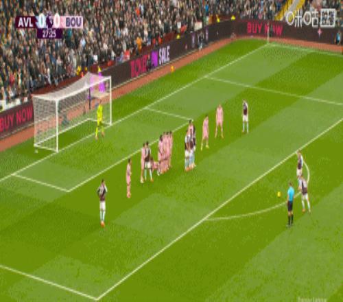 第28分钟,正反手教学,布恩迪亚位置相近的任意球直接破门,维拉1-0