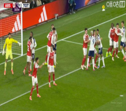 第33分钟,萨卡任意球攻门,维卡里奥救险